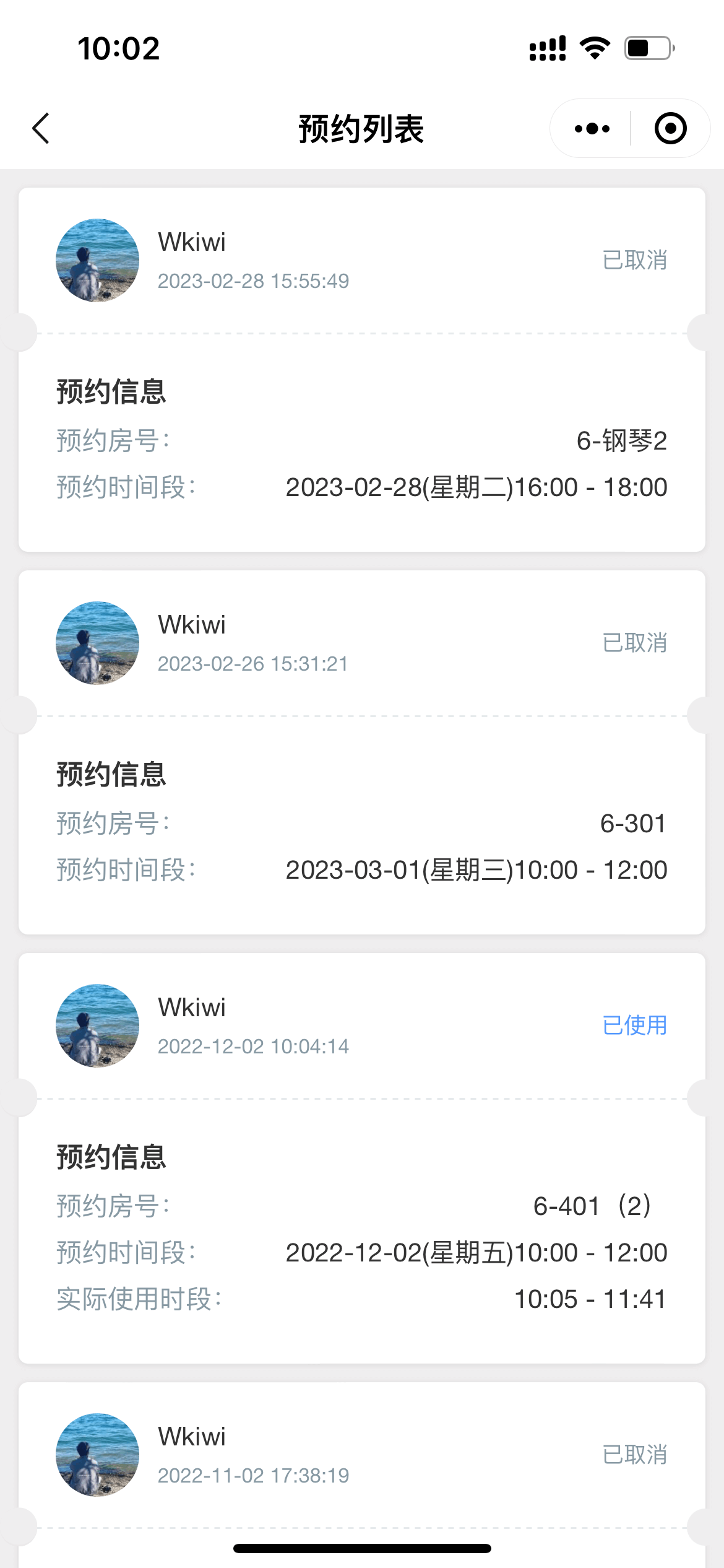 预约列表